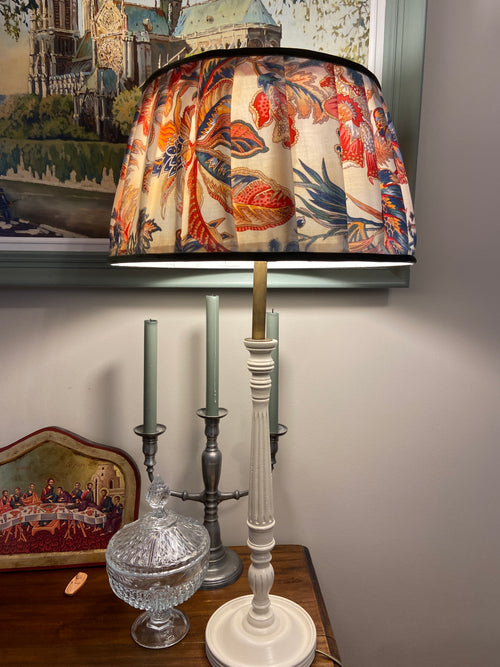 Lampe en laiton patiné & abat-jour confectionné main